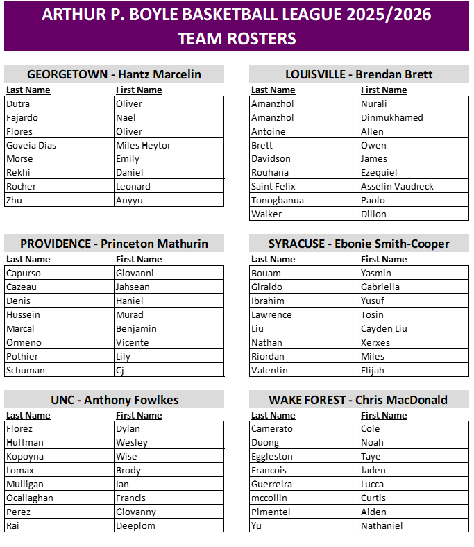 ARTHUR P. BOYLE BASKETBALL LEAGUE (4th & 5th Grade) Register View Cart
